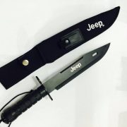 Faca estilo militar tática Jeep, feita em aço inox fosfatizado, ela é altamente resistente, acompanhada de uma bainha em nylon com amolador de facas, e kit de sobrevivencia incluso dentro do cabo da faca.