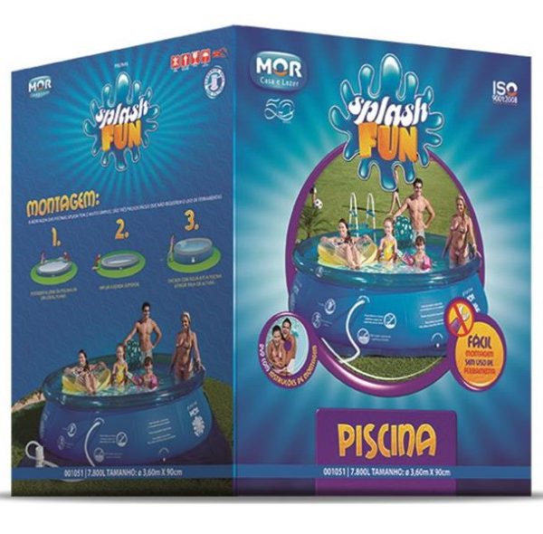 A Piscina 7800 Litros é perfeita para a diversão de toda família. Fabricada pela Metalúrgica MOR Sua estrutura é feita com lona reforçada com laminado duplo e uma trama de poliéster entre as lâminas que dão maior resistência ao produto. Para montar a Piscina Splash Fun, basta estender a lona no chão, inflar a borda e encher de água até a altura indicada no manual. Garanta já a sua!