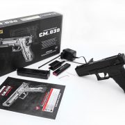 Essa Pistola utiliza munições de BB’s, também conhecidas como esferas plásticas e atinge velocidade de saída de até 79 m/s – 260 fps com BB’s 0.12g.